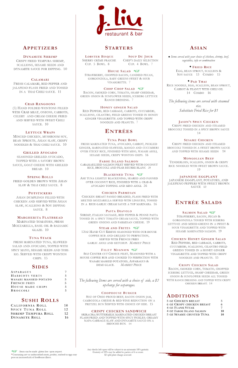 Welcome to J Liu of Dublin, a culinary gem located in the heart of Dublin, Ohio. This Asian fusion restaurant offers a diverse menu that harmoniously blends Eastern and Western flavors, ensuring that there’s something for everyone.
